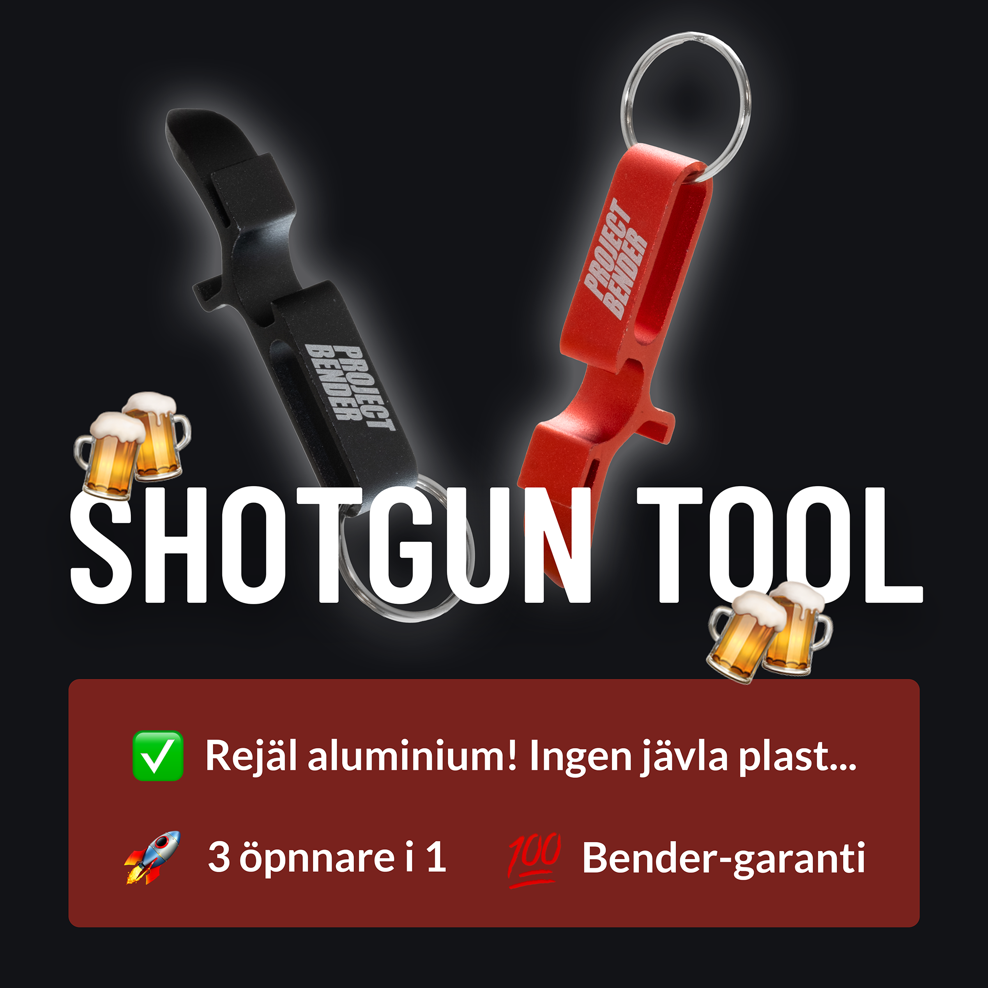 Med vår 3-in-1 shotgun-tool tillverkad i aluminium slipper du offra tummen eller hemnyckeln. Den fungerar också utmärkt som kapsylöppnare om du tappat bort din dosa.